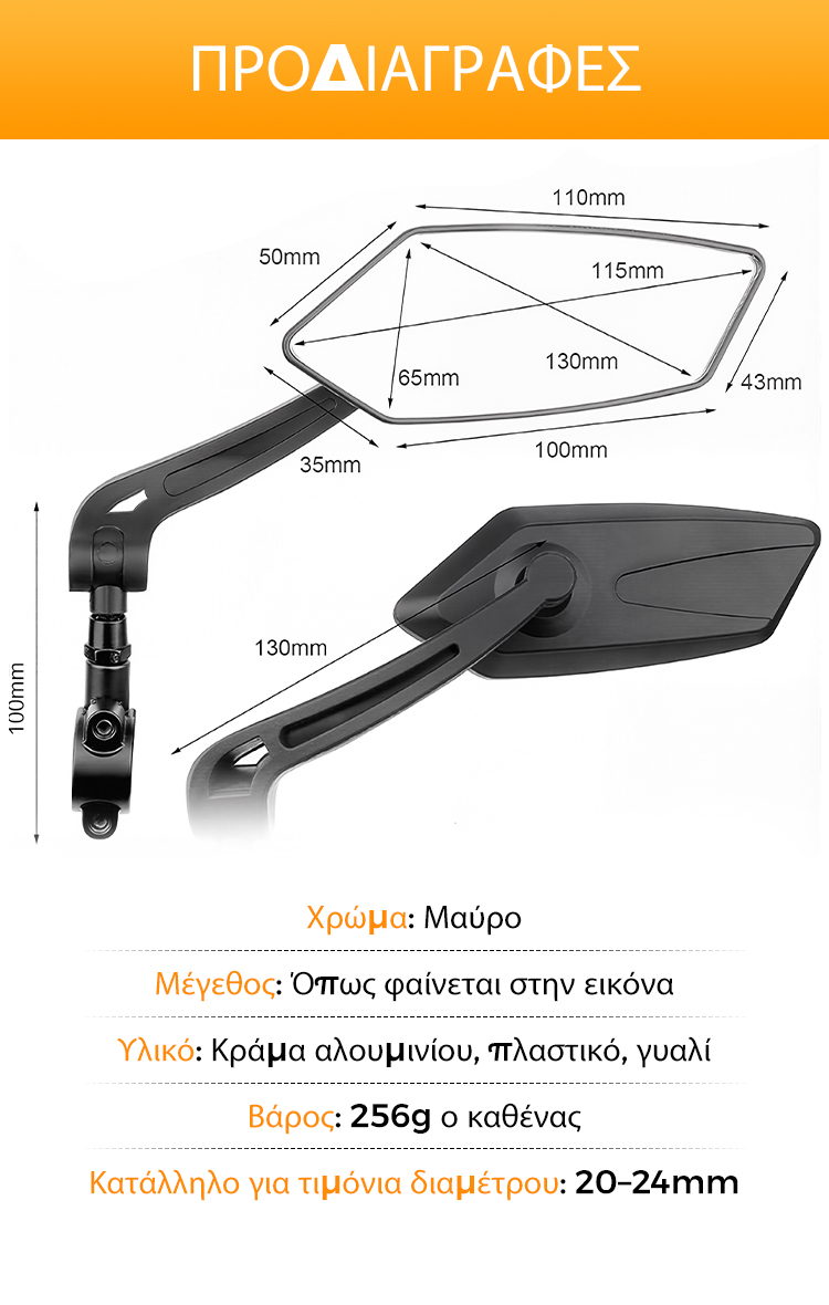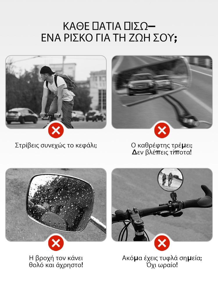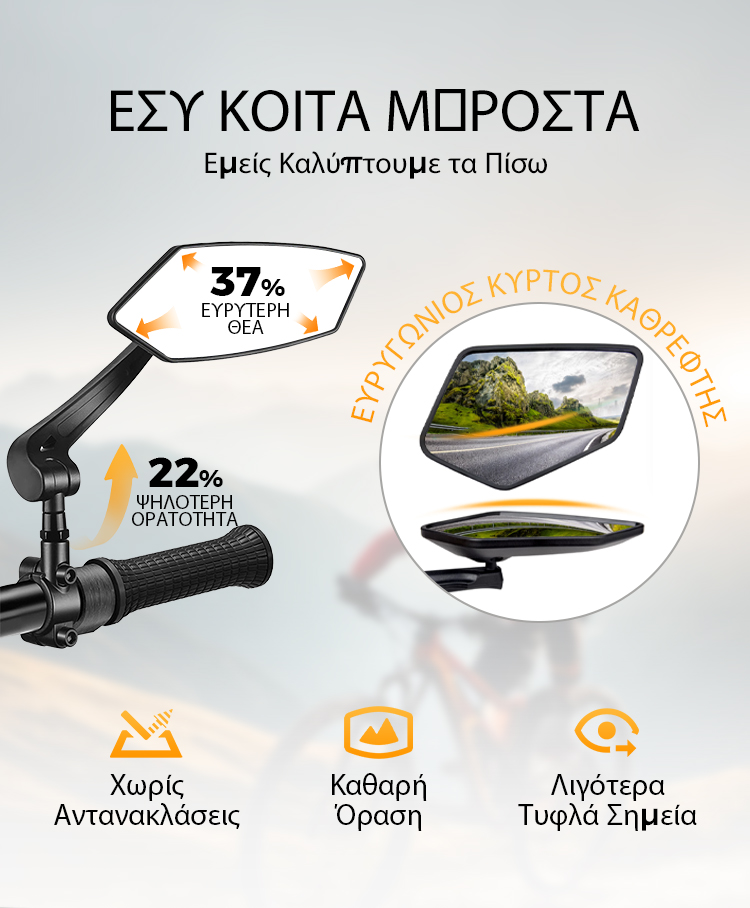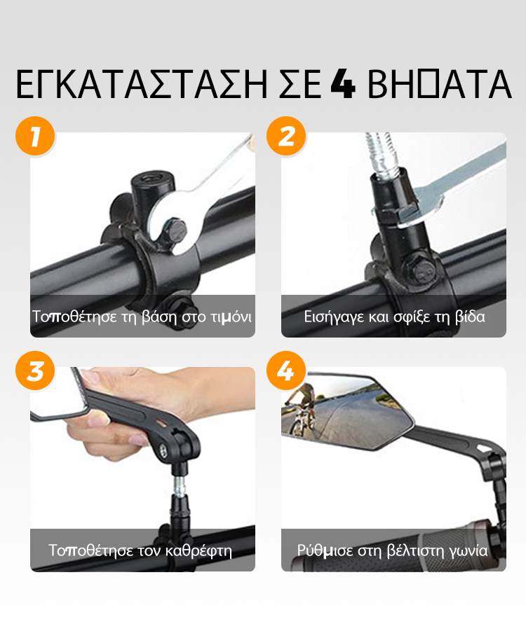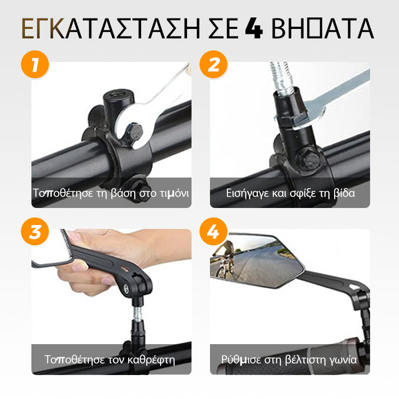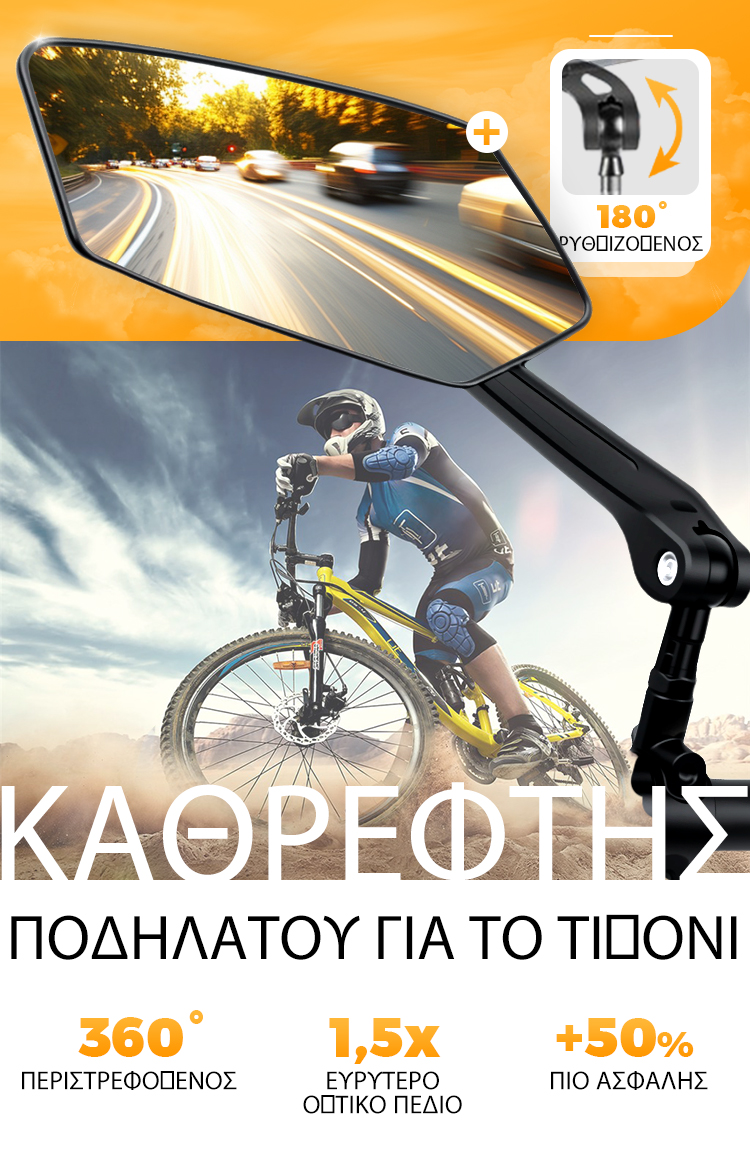 Καθρέφτης οπισθοπορείας με δυνατότητα περιστροφής 360 μοιρών – κατάλληλος για μοτοσικλέτες και ποδήλατα