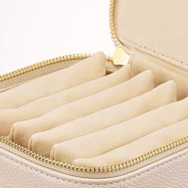 Ειδικά σχεδιασμένο χερούλι από κάρδαμο, κλείσιμο με φερμουάρ για εύκολη αποθήκευση και εξαγωγή- βελούδινη επένδυση για να μην γρατζουνιστούν τα κοσμήματα- δερμάτινο υλικό με άκρη από λίτσι.