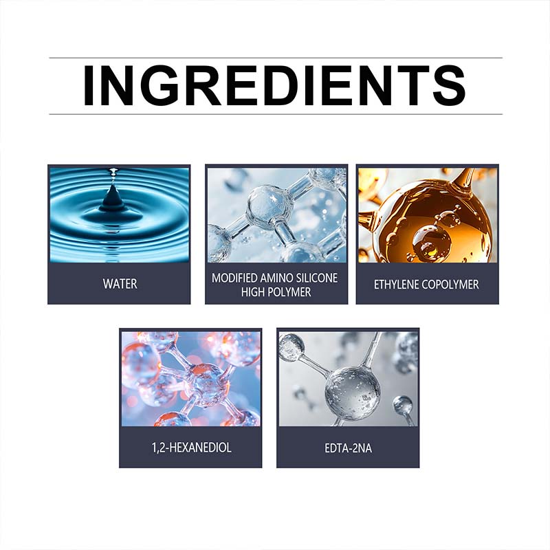 Υλικό: νερό, τροποποιημένο αμινο-σιλικόνιο υψηλού πολυμερούς, αιθυλένιο-κοπολυμερές, 1,2-εξανδιόλη, EDTA-2Na