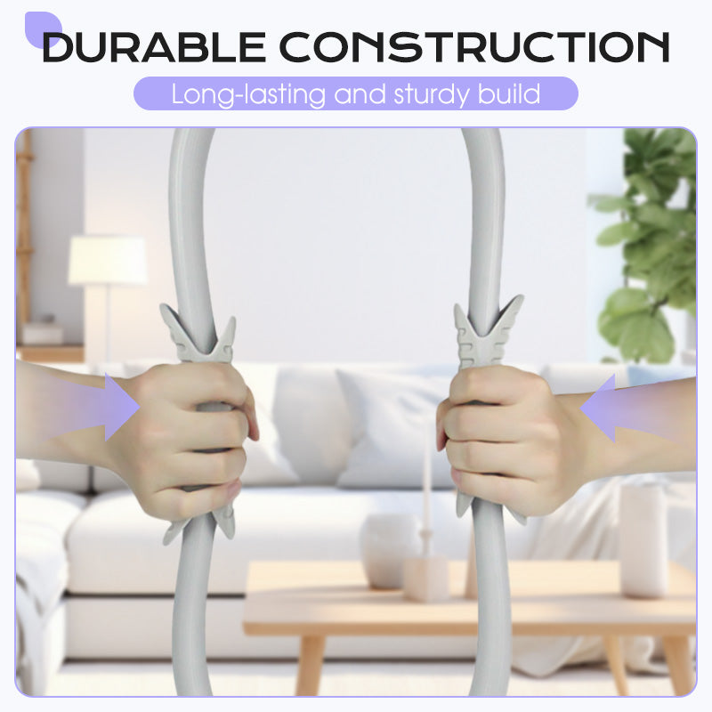 Ανθεκτική και ελαφριά κατασκευή: Κατασκευασμένος από ανθεκτικά υλικά, ο δακτύλιος για πιλάτες εξασφαλίζει μακροχρόνια χρήση χωρίς παραμόρφωση ή απώλεια αντοχής, γεγονός που τον καθιστά ιδανικό για τακτικές ασκήσεις γυμναστικής.