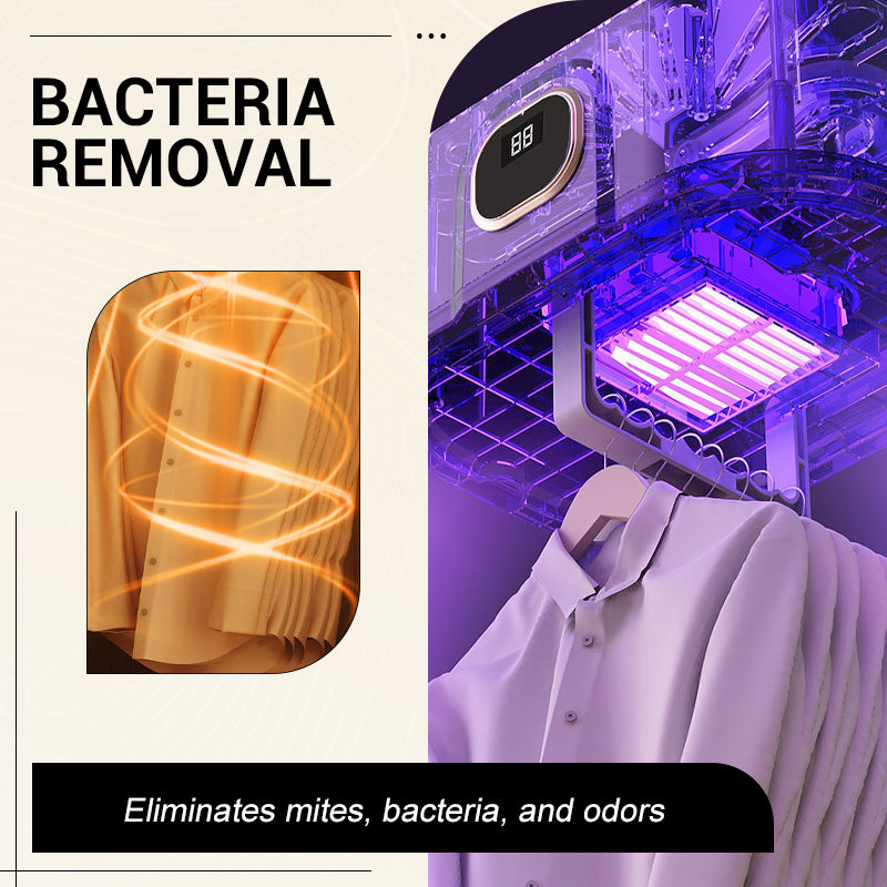 ΑΠΟΛΥΜΑΝΤΙΚΗ ΔΡΑΣΗ – Η συσκευή δεν στεγνώνει μόνο, αλλά βοηθά και στη διατήρηση της καθαριότητας. Ο ζεστός αέρας καταστρέφει τα βακτήρια και τα ακάρεα, ενώ η ενσωματωμένη τεχνολογία αρνητικών ιόντων εξουδετερώνει τις οσμές. Έτσι, τα ρούχα σας δεν θα είναι μόνο στεγνά, αλλά και υγιεινά, ασφαλή και με καθαρή μυρωδιά.