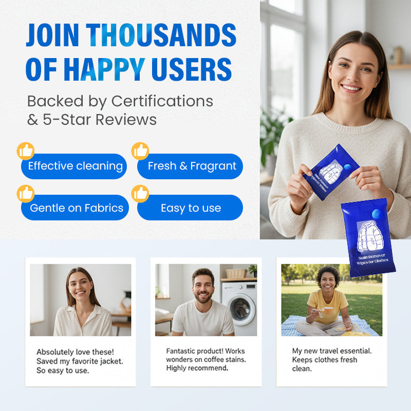 ΑΠΟΤΕΛΕΣΜΑΤΙΚΗ ΑΦΑΙΡΕΣΗ ΛΕΚΕΔΩΝ — Αφαιρούν αμέσως λεκέδες από καφέ, σάλτσα, μακιγιάζ και λίπος. Χάρη στην ισχυρή δράση τους, αποκαθιστούν την άψογη εμφάνιση των ρούχων σε λίγα δευτερόλεπτα. Διατηρήστε τα μπουφάν και τα ρούχα σας καθαρά με ελάχιστη προσπάθεια, απολαμβάνοντας τη μέγιστη αυτοπεποίθηση.