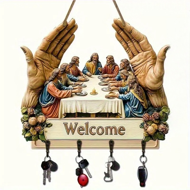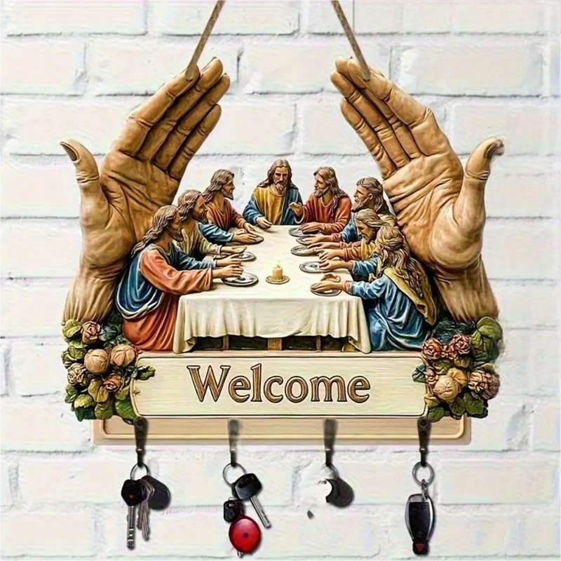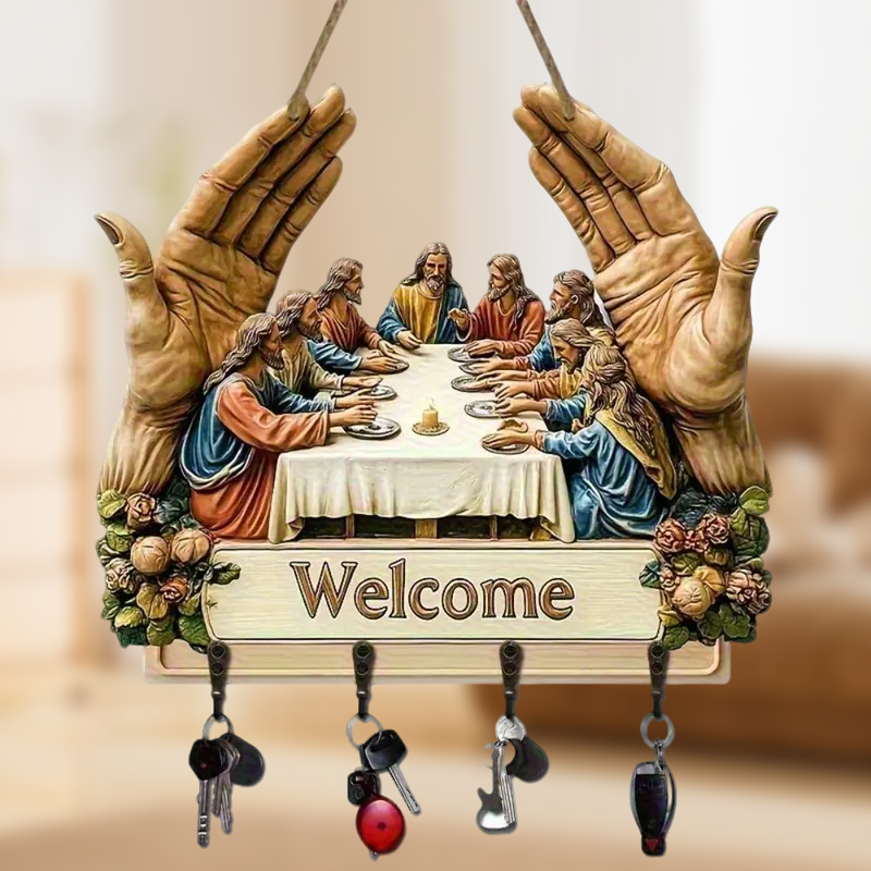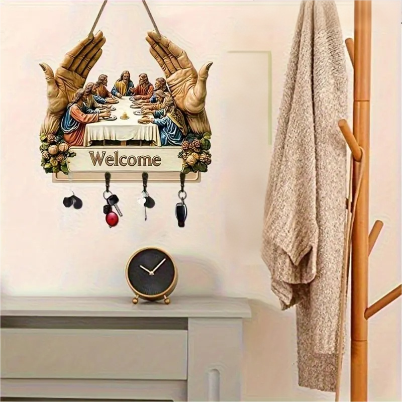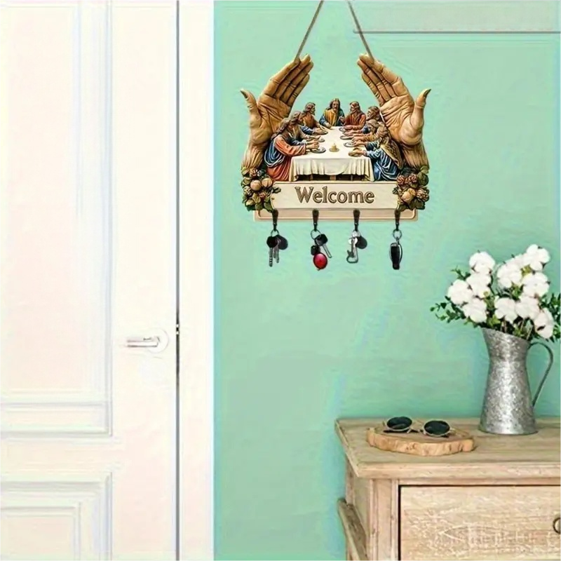 ΚΛΑΣΙΚΟ ΑΡΤΙΣΤΙΚΟ ΣΧΕΔΙΟ: Αυτή η ξύλινη κρεμάστρα για κλειδιά με το εμβληματικό μοτίβο της «Τελευταίας Δείπνου» εμπλουτίζει τους εσωτερικούς χώρους με διαχρονική ομορφιά. Η καλλιτεχνική της εκτύπωση προσθέτει κομψότητα και ταυτόχρονα συνδυάζει τη διακοσμητικότητα με τη λειτουργικότητα, μετατρέποντας ένα απλό αξεσουάρ τοίχου σε ένα σημαντικό έργο τέχνης για το σπίτι.